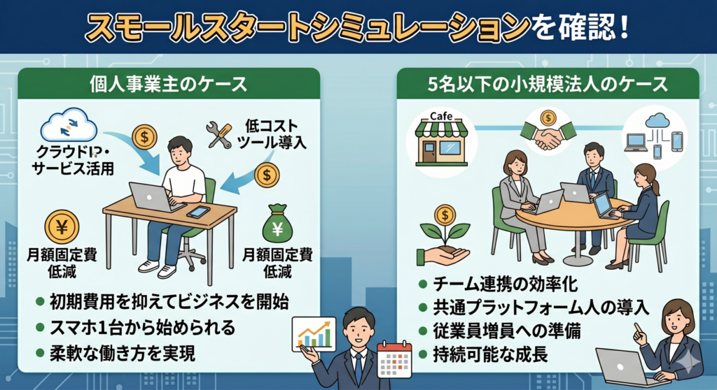 スモールスタートシミュレーション|個人事業主・5名以下の小規模法人向け